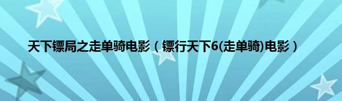 大家好,小问来为大家解答以上问题。天下镖局之走单骑电影,镖行天下6(走单骑)电影这个很多人还不知道,现在让我们一起来看看吧!