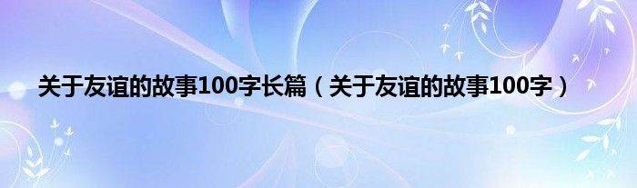 以上就是【关于友谊的故事100字长篇,关于友谊的故事100字】相关内容。