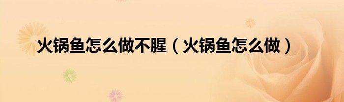以上就是【火锅鱼怎么做不腥,火锅鱼怎么做】相关内容。