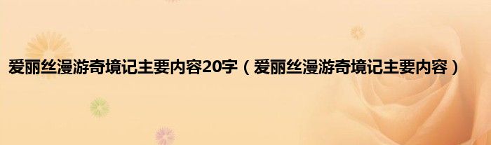大家好,小问来为大家解答以上问题。爱丽丝漫游奇境记主要内容20字,爱丽丝漫游奇境记主要内容这个很多人还不知道,现在让我们一起来看看吧!