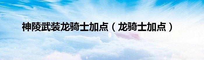 大家好,小问来为大家解答以上问题。神陵武装龙骑士加点,龙骑士加点这个很多人还不知道,现在让我们一起来看看吧!