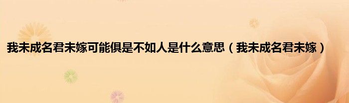 大家好,小问来为大家解答以上问题。我未成名君未嫁可能俱是不如人是什么意思,我未成名君未嫁这个很多人还不知道,现在让我们一起来看看吧!