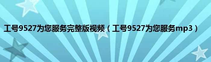 大家好,小问来为大家解答以上问题。工号9527为您服务完整版视频,工号9527为您服务mp3这个很多人还不知道,现在让我们一起来看看吧!