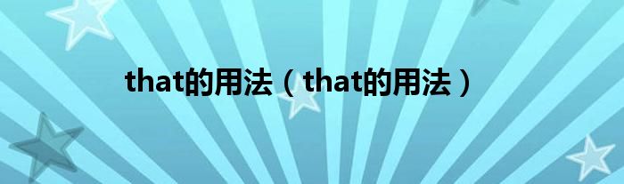 大家好,小问来为大家解答以上问题。that的用法,that的用法这个很多人还不知道,现在让我们一起来看看吧!