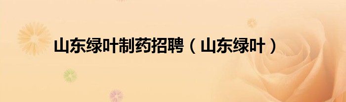 山东绿叶制药招聘(山东绿叶)
