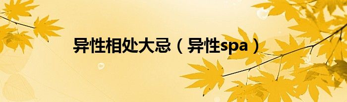 大家好,小问来为大家解答以上问题。异性相处大忌,异性spa这个很多人还不知道,现在让我们一起来看看吧!