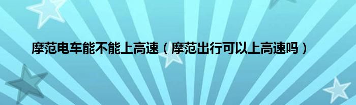以上就是【摩范电车能不能上高速,摩范出行可以上高速吗】相关内容。