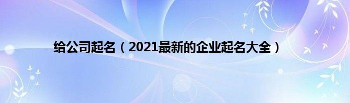 本文给公司起名,2021最新的企业起名大全到此分享完毕,希望对大家有所帮助。