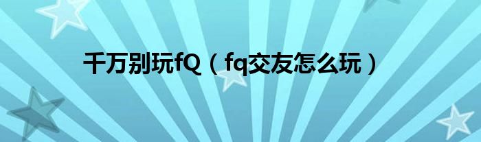 大家好,小问来为大家解答以上问题。千万别玩fQ,fq交友怎么玩这个很多人还不知道,现在让我们一起来看看吧!