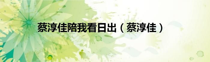 大家好,小问来为大家解答以上问题。蔡淳佳陪我看日出,蔡淳佳这个很多人还不知道,现在让我们一起来看看吧!