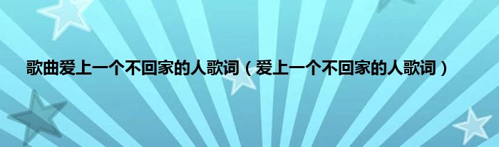 大家好,小问来为大家解答以上问题。歌曲爱上一个不回家的人歌词,爱上一个不回家的人歌词这个很多人还不知道,现在让我们一起来看看吧!