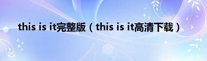 大家好,小问来为大家解答以上问题。this is it完整版,this is it高清下载这个很多人还不知道,现在让我们一起来看看吧!