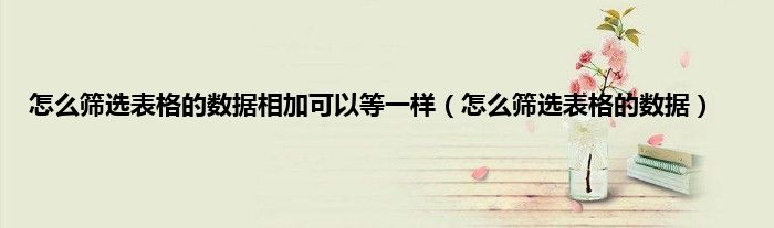 以上就是【怎么筛选表格的数据相加可以等一样,怎么筛选表格的数据】相关内容。