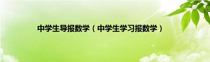 大家好,小问来为大家解答以上问题。中学生导报数学,中学生学习报数学这个很多人还不知道,现在让我们一起来看看吧!