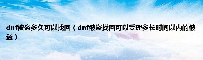 dnf被盗多久可以找回(dnf被盗找回可以受理多长时间以内的被盗)