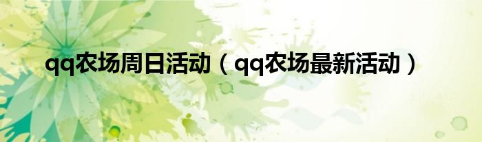 以上就是【qq农场周日活动,qq农场最新活动】相关内容。