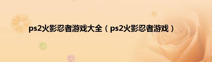 1、回复楼主现在ps2上火影忍者已经没有了,只能玩以前的几部了,要是还出的话可能出在psp·wii·x360和ps3上了我看现在的火影忍者最可能出在psp和x360上。