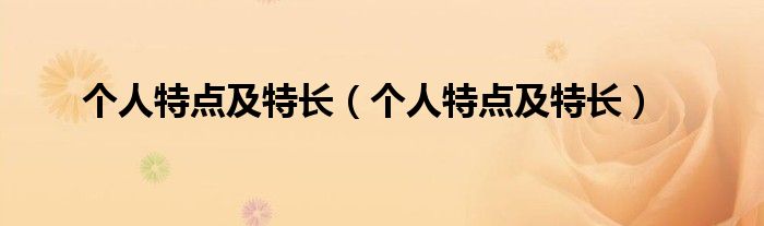 大家好,小问来为大家解答以上问题。个人特点及特长,个人特点及特长这个很多人还不知道,现在让我们一起来看看吧!