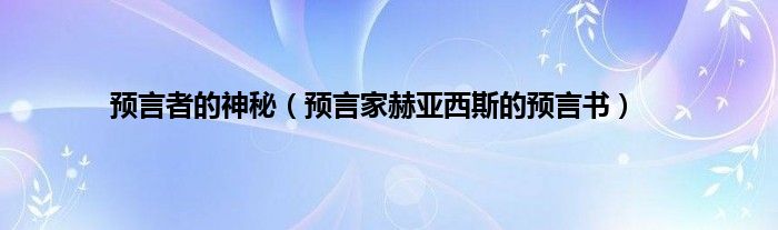 大家好,小问来为大家解答以上问题。预言者的神秘,预言家赫亚西斯的预言书这个很多人还不知道,现在让我们一起来看看吧!