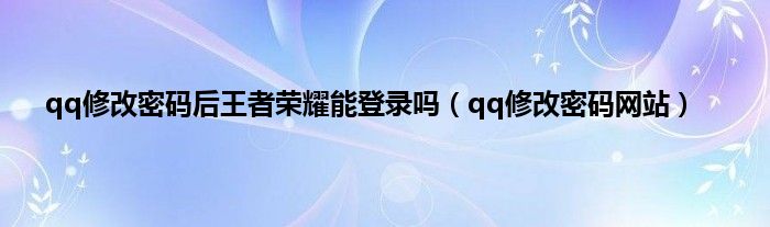 qq修改密码后王者荣耀能登录吗(qq修改密码网站)