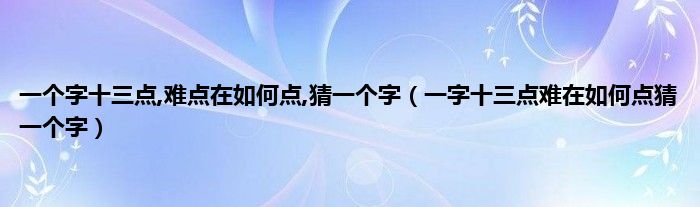 一个字十三点,难点在如何点,猜一个字(一字十三点难在如何点猜一个字)