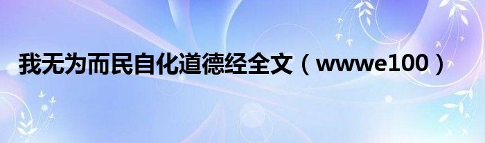 大家好,小问来为大家解答以上问题。我无为而民自化道德经全文,wwwe100这个很多人还不知道,现在让我们一起来看看吧!