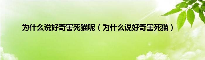 大家好,小问来为大家解答以上问题。为什么说好奇害死猫呢,为什么说好奇害死猫这个很多人还不知道,现在让我们一起来看看吧!