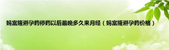 大家好,小问来为大家解答以上问题。妈富隆避孕药停药以后最晚多久来月经,妈富隆避孕药价格这个很多人还不知道,现在让我们一起来看看吧!