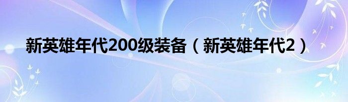 新英雄年代200级装备(新英雄年代2)