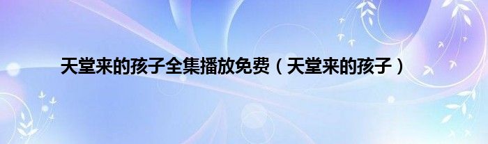 以上就是【天堂来的孩子全集播放免费,天堂来的孩子】相关内容。
