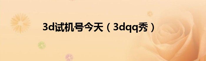 大家好,小问来为大家解答以上问题。3d试机号今天,3dqq秀这个很多人还不知道,现在让我们一起来看看吧!