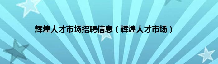 大家好,小问来为大家解答以上问题。辉煌人才市场招聘信息,辉煌人才市场这个很多人还不知道,现在让我们一起来看看吧!