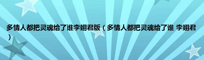 以上就是【多情人都把灵魂给了谁李翊君版,多情人都把灵魂给了谁 李翊君】相关内容。