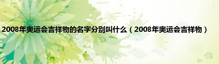 以上就是【2008年奥运会吉祥物的名字分别叫什么,2008年奥运会吉祥物】相关内容。