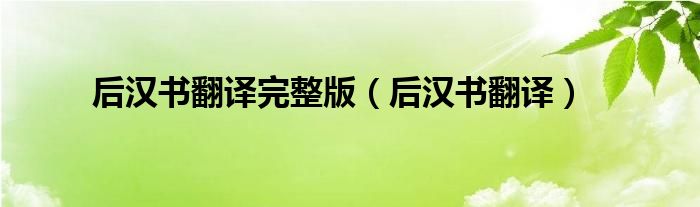 大家好,小问来为大家解答以上问题。后汉书翻译完整版,后汉书翻译这个很多人还不知道,现在让我们一起来看看吧!
