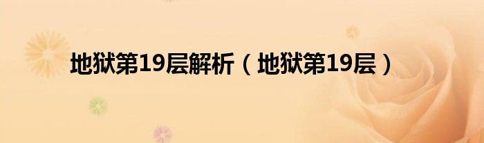 大家好,小问来为大家解答以上问题。地狱第19层解析,地狱第19层这个很多人还不知道,现在让我们一起来看看吧!