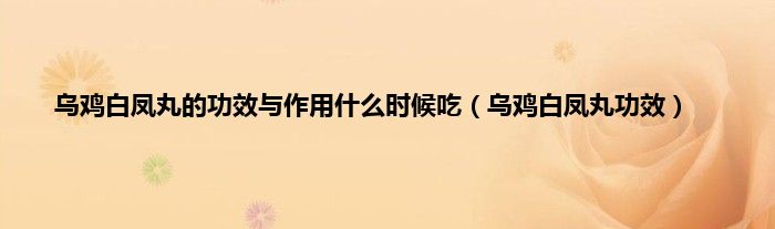 本文,乌鸡白凤丸的功效与作用什么时候吃,乌鸡白凤丸功效到此就分享完毕,希望对大家有所帮助。