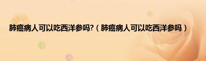 本文,肺癌病人可以吃西洋参吗?,肺癌病人可以吃西洋参吗到此就分享完毕,希望对大家有所帮助。