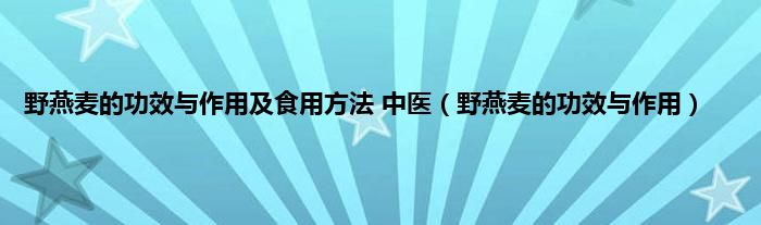 本文,野燕麦的功效与作用及食用方法 中医,野燕麦的功效与作用到此就分享完毕,希望对大家有所帮助。