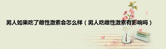 大家好,男人如果吃了雌性激素会怎么样,男人吃雌性激素有影响吗很多人还不知道,现在让我们一起来看看吧!