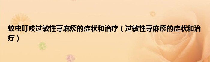 本文,蚊虫叮咬过敏性荨麻疹的症状和治疗,过敏性荨麻疹的症状和治疗到此就分享完毕,希望对大家有所帮助。