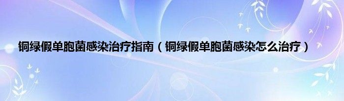 本文,铜绿假单胞菌感染治疗指南,铜绿假单胞菌感染怎么治疗到此就分享完毕,希望对大家有所帮助。