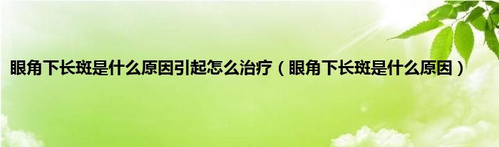 本文,眼角下长斑是什么原因引起怎么治疗,眼角下长斑是什么原因到此就分享完毕,希望对大家有所帮助。