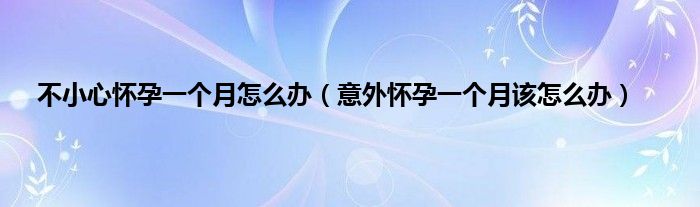 本文,不小心怀孕一个月怎么办,意外怀孕一个月该怎么办到此就分享完毕,希望对大家有所帮助。