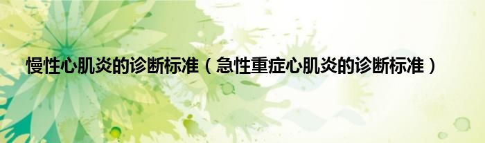 本文,慢性心肌炎的诊断标准,急性重症心肌炎的诊断标准到此就分享完毕,希望对大家有所帮助。