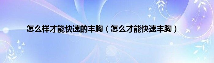 怎么样才能快速的丰胸(怎么才能快速丰胸)