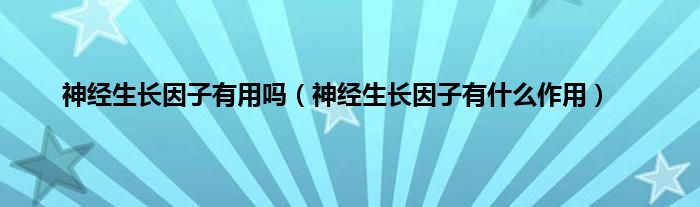 大家好,神经生长因子有用吗,神经生长因子有什么作用很多人还不知道,现在让我们一起来看看吧!