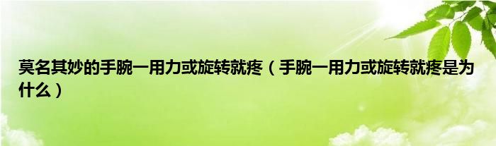 本文,莫名其妙的手腕一用力或旋转就疼,手腕一用力或旋转就疼是为什么到此就分享完毕,希望对大家有所帮助。