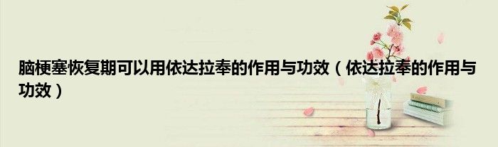 大家好,脑梗塞恢复期可以用依达拉奉的作用与功效,依达拉奉的作用与功效很多人还不知道,现在让我们一起来看看吧!