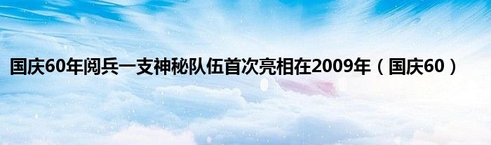 大家好,小问来为大家解答以上问题。国庆60年阅兵一支神秘队伍首次亮相在2009年,国庆60这个很多人还不知道,现在让我们一起来看看吧!